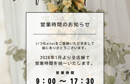 aitas 営業時間統一のお知らせ